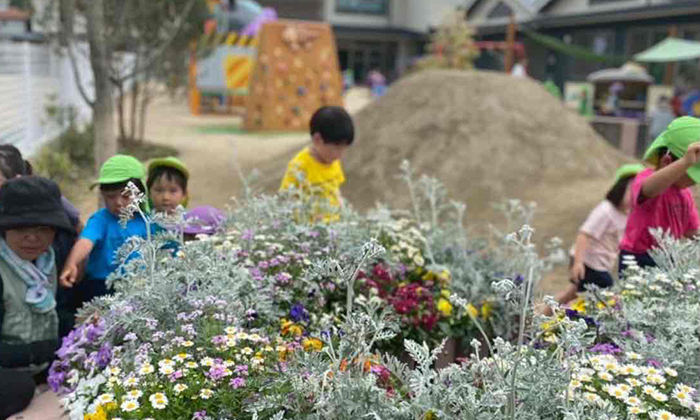 広々とした庭園で、元気に走りまわって遊ぶ園児はいつも楽しそうです。